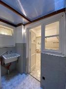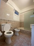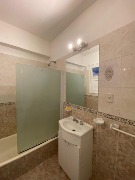 El dormitorio, también al lateral y con ventana, brinda una atmósfera cálida y confortable. El baño completo dispone de bañera y mampara, presentando un diseño clásico y funcional.