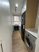 Cocina completa con anafe, horno empotrado, heladera con freezer y dispenser, campana de acero inoxidable con extractor LED y lavarropas automático