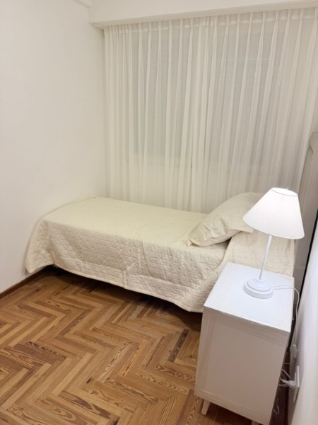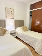 Habitación con dos Sommier de una plaza, respaldos, mesa de luz y placard. Vista a patio de edificio ( Sin acceso ). cortinas Hunter Douglas