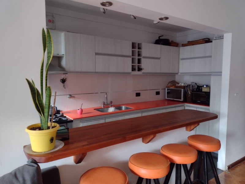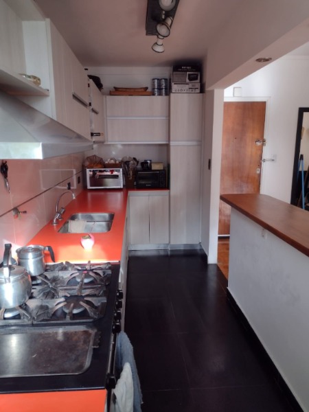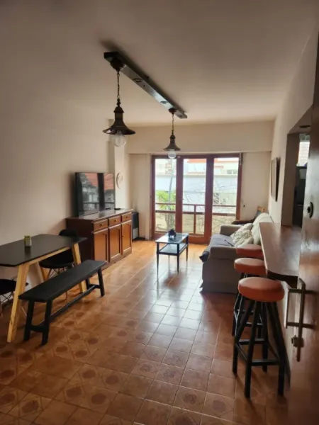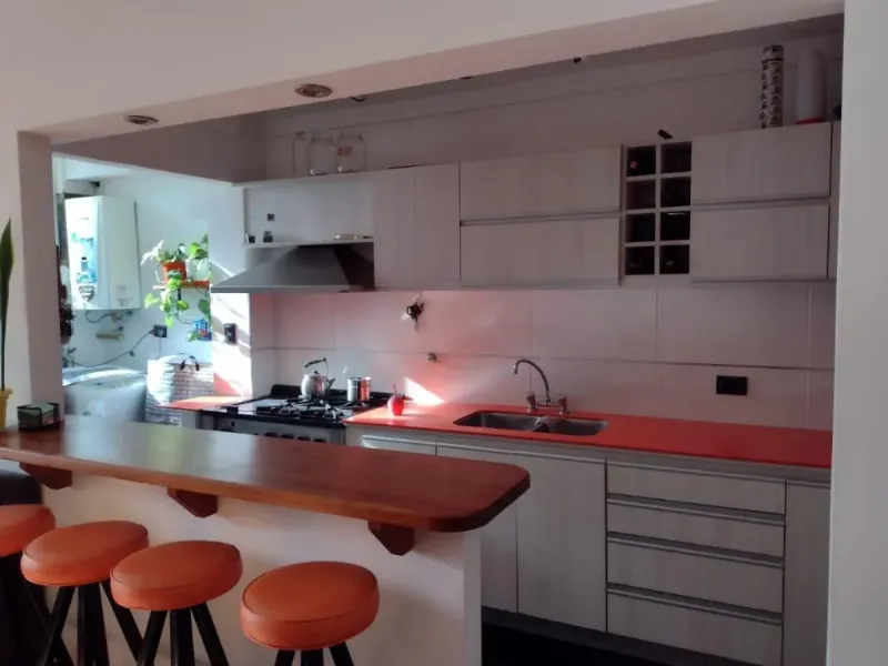 La propiedad cuenta con aproximadamente 70 m² totales. Presenta un amplio living comedor con salida al balcón y barra desayunadora con mueble de apoyo, generando un espacio moderno, funcional y muy luminoso.