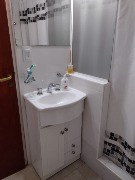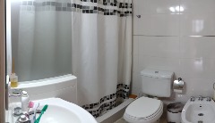 Baño principal amplio, completo y con ventilación natural, equipado con sanitarios Ferrum. Además, cuenta con baño de servicio también con ventilación natural. Posee un espacio adicional tipo escritorio o dependencia de servicio independiente.