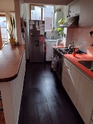 Cocina en L con lavadero incorporado, equipada y diseñada para un uso práctico y cómodo.