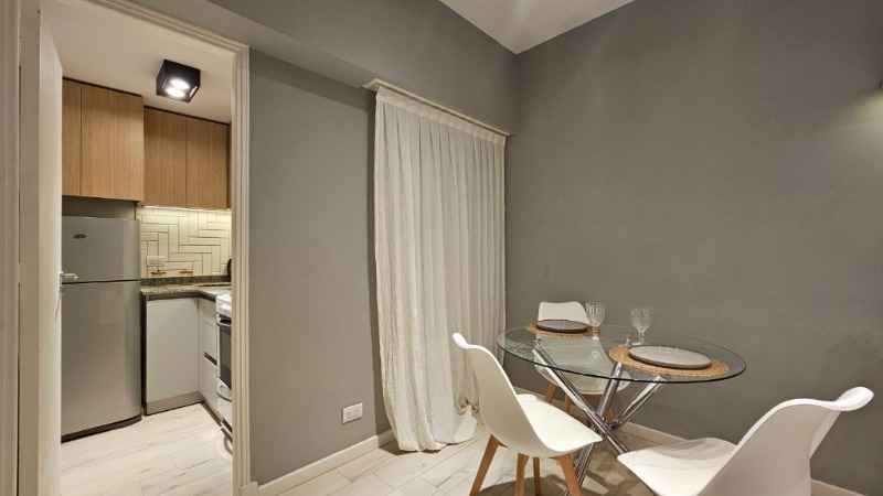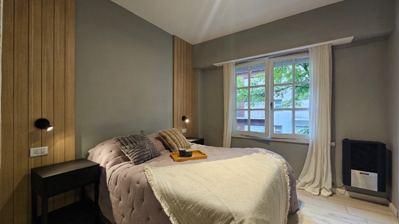 La cocina integrada, con ventilación natural, aporta practicidad al día a día. El dormitorio principal, amplio y luminoso, cuenta con placard empotrado y salida a un segundo balcón con vista al contrafrente. El baño es completo y moderno.