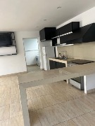 Cocina integrada con isla y amplio comedor diario, generando un espacio moderno y funcional.