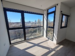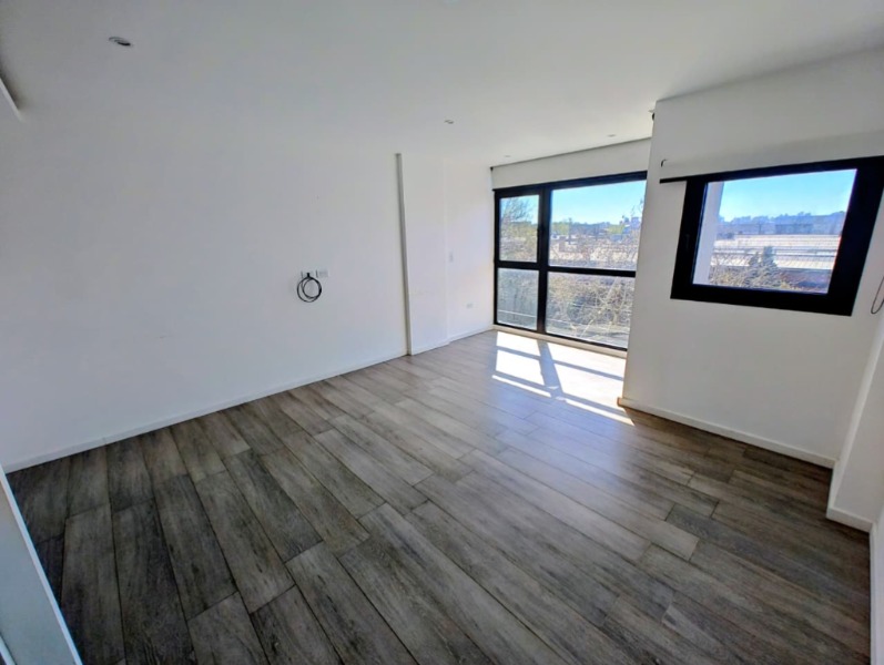 Se trata de un ambiente y medio súper amplio, con cocina integrada y amoblada, un cómodo baño completo con ducha y un ambiente principal muy luminoso gracias a su gran ventanal vidriado al frente.