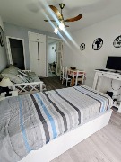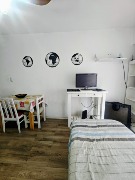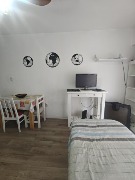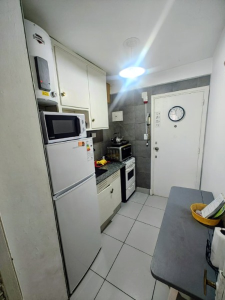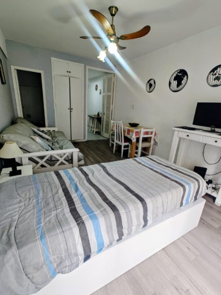 Este acogedor departamento de 1 ambiente está diseñado para ofrecer comodidad y funcionalidad. Ubicado en el contrafrente, cuenta con un balcón francés que permite la entrada de abundante luz natural. La cocina está integrada al ambiente principal y está equipada con electrodomésticos modernos: horno eléctrico con anafe, microondas y heladera con freezer. Además, el departamento dispone de televisión con Flow e internet, asegurando entretenimiento y conectividad.