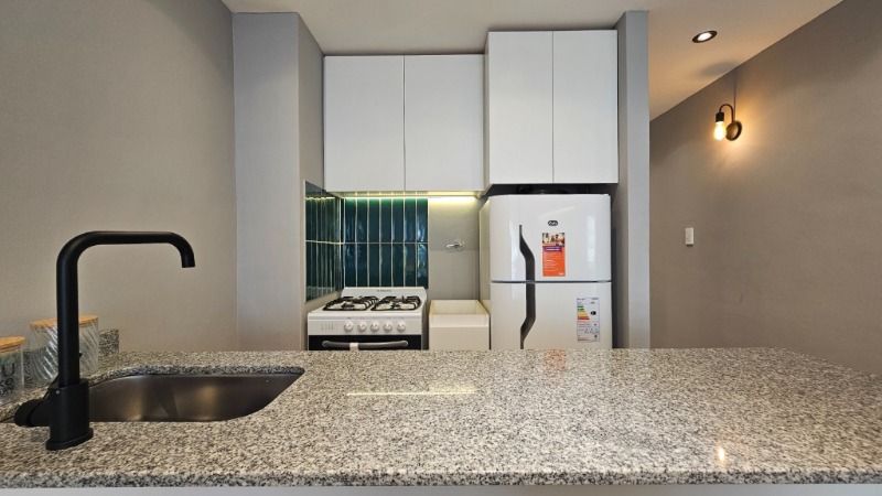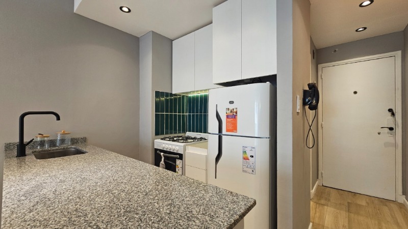 🍽️ Cocina separada (2.5 x 2 m), revestida en porcelanato, con equipamiento a estrenar:
