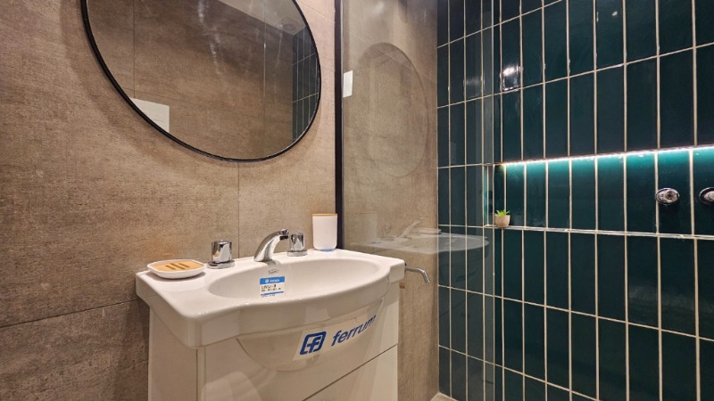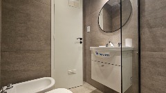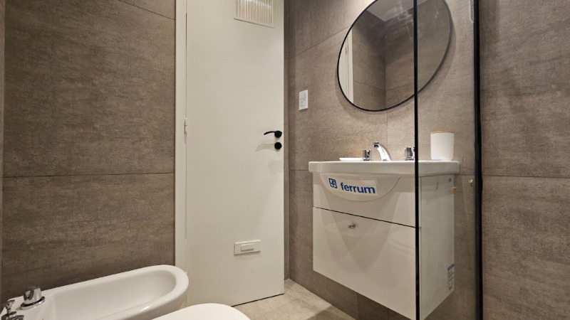 Baño completo con bañera, totalmente revestido en porcelanato (2.1 x 1.7 m).