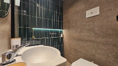 Toilette revestido en porcelanato (1.5 x 1.5 m).