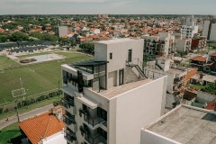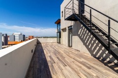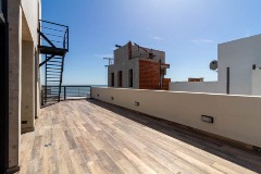 En el último piso del edificio, los propietarios pueden acceder a un exclusivo quincho con parrilla a leña, horno industrial y terraza con vistas panorámicas al mar, ideal para celebraciones y encuentros sociales.