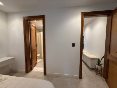 Hacia el contrafrente, se encuentra un toilette de cortesía y una confortable habitación con vestidor y baño en suite, diseñada para brindar privacidad y confort.