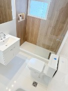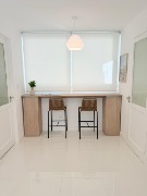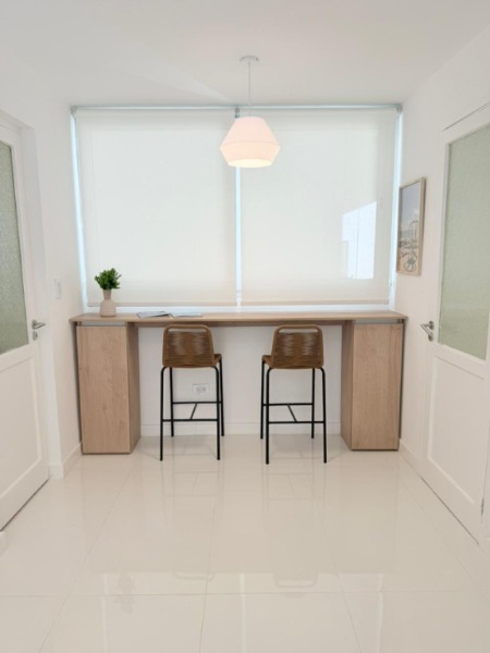 Baño principal amplio, completo y con ventilación natural, equipado con sanitarios Ferrum. Además, cuenta con baño de servicio también con ventilación natural. Posee un espacio adicional tipo escritorio o dependencia de servicio independiente.