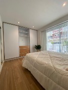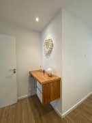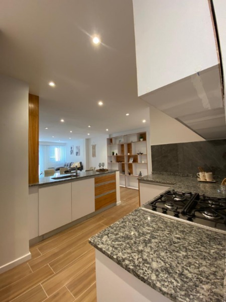 El baño completo ha sido diseñado con estilo y calidad, mientras que el dormitorio principal, con placard a medida, cuenta con salida directa al balcón y baño en suite, asegurando privacidad y comodidad. Un segundo dormitorio, ubicado al contrafrente, dispone de escritorio y placard a medida, perfecto para espacio de trabajo o invitados.