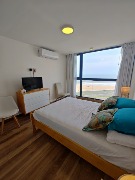Segundo dormitorio al contrafrente, con baño en suite, placard empotrado, pisos de parquet pulido y plastificado, y vista parcial al mar