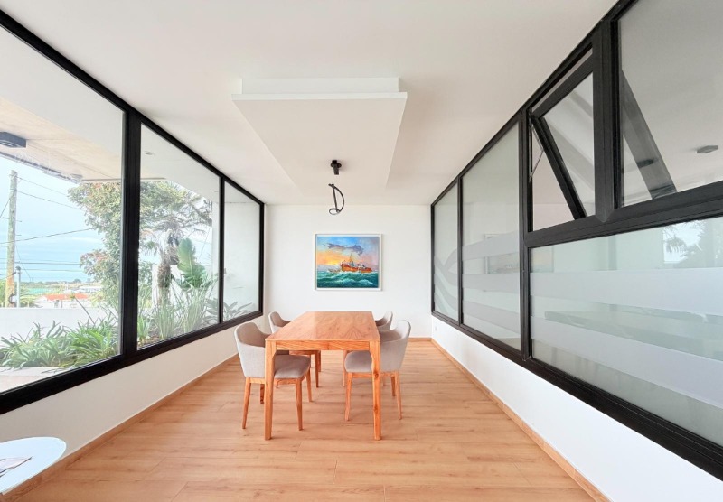 Carpintería de PVC con doble vidrio y muros con cámara de aire para aislación acústica y térmica.